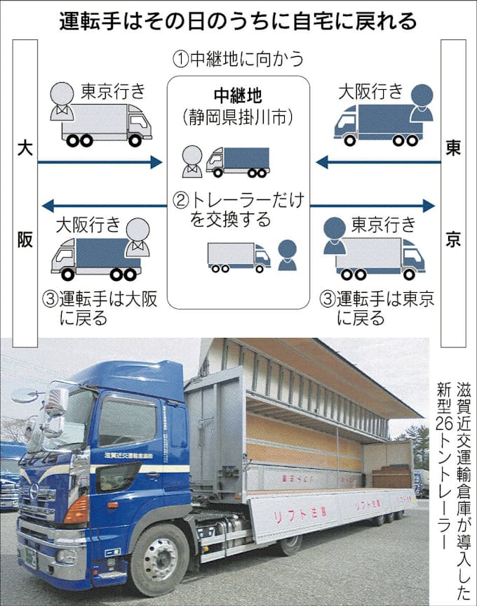長距離トラック運転手が日帰り 滋賀近交運輸 中継地で荷物交換 日本経済新聞